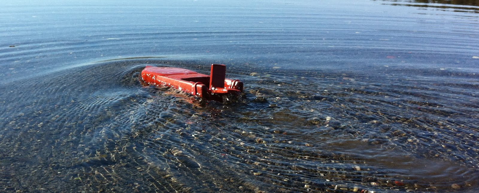 En slik båt er enkel å lage, skåret ut fra en planke. Det kan være en fordel å spikke til litt skrog. Denne båten er pusset ganske nøye, malt flere ganger og pusset mellom hvert strøk. Da blir den glatt og flyter fort og fint i vannet.